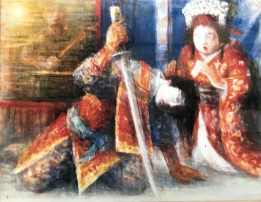 一時は上京されておりましたが、秩父に戻り一六様のお祭りで歌舞伎と再会を果たし、歌舞伎舞台の原色の世界に励まされて、歌舞伎を描くようになりました。 「絵でメッセージを伝えたい」と思ってやってきて、農民シリーズなどで豚などをメインに描いてきました。また、合角シリーズも描きました。合角は景色も広々として、高校時代には何回かスケッチにも行ったし、とっても好きな場所でした。自分が描き残さないと、と思い、8年間かけて描き続けました。そこで、絵も、考えも、変わりました。
